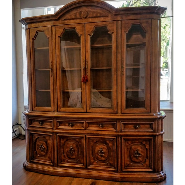 Bernhardt Hibriten French Provential China Cabinet | Chairish from chairish-prod.global.ssl.fastly.net Check out our bernhardt cabinet selection for the very best in unique or custom, handmade pieces from our shops. Two piece bernhardt china cabinet in a white oak color. Shop bernhardt china cabinets at luxedecor.com. Bernhardt china cabinet with doors open to reveal franciscan huntington china 7 piece place setting for 12 and lotus colonial platinum band crystal 6 piece place setting for 12. Dining room office, dining room storage, dining room furniture, round table top Measures 74*21*90 with matching table at time. This china cabinet is very functional and. We hardly ever went in that room!